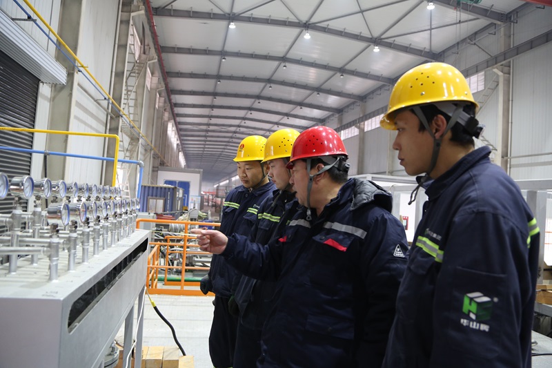 堅守——在韓城煤矸石綠色無害化綜合處置示范線項目,技術專家正帶領該項目技術人員進行電容窯冷卻水的調式工作,為保證即將試生產,該公司全員在春節假期全力投身設備調試。
