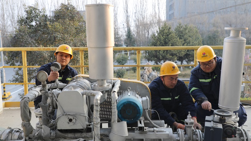 細致——富平公司發運車間技術員對水泥散裝區域羅茨風機進行日常巡檢,站好最后一班崗。