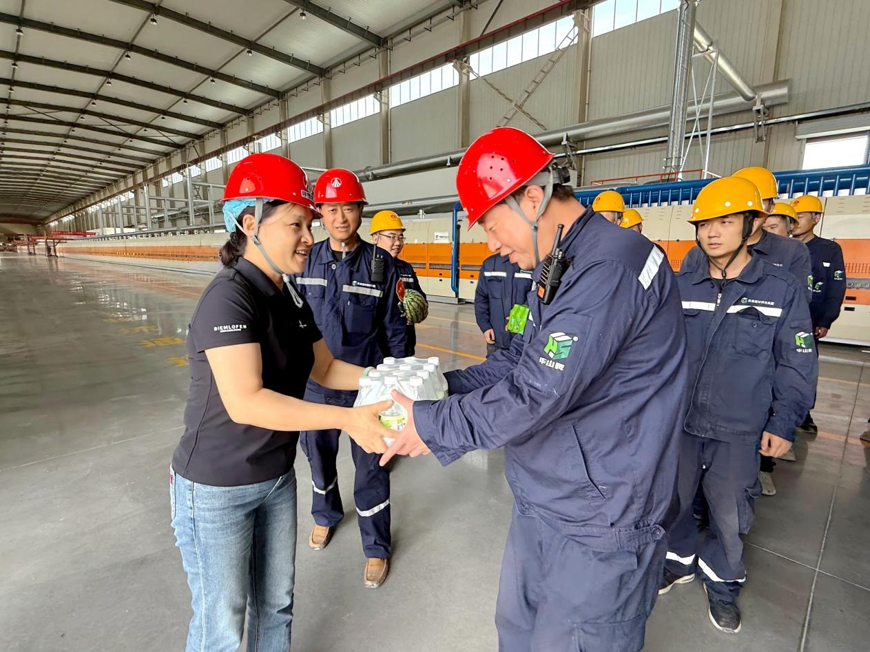 在大暑當(dāng)日,公司黨委書記、董事長周紅來到富平公司開展“送清涼”慰問活動,向高溫天氣堅守在一線的廣大職工送去關(guān)心關(guān)懷和消暑用品。